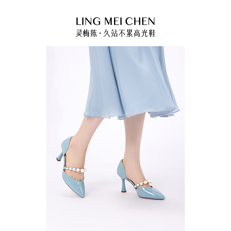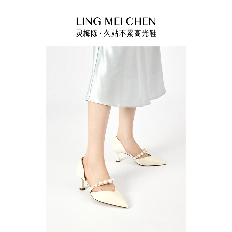 白色婚鞋 尖头女鞋 女款 新款 绝美玛丽珍凉鞋 LINGMEICHEN珍珠高跟鞋