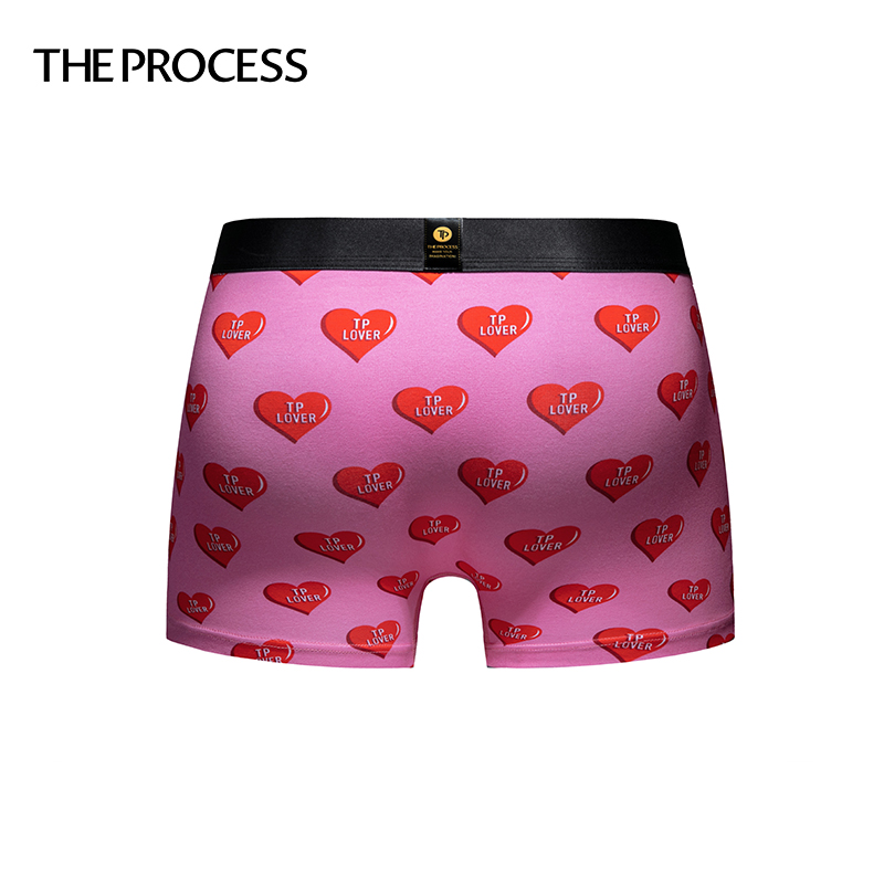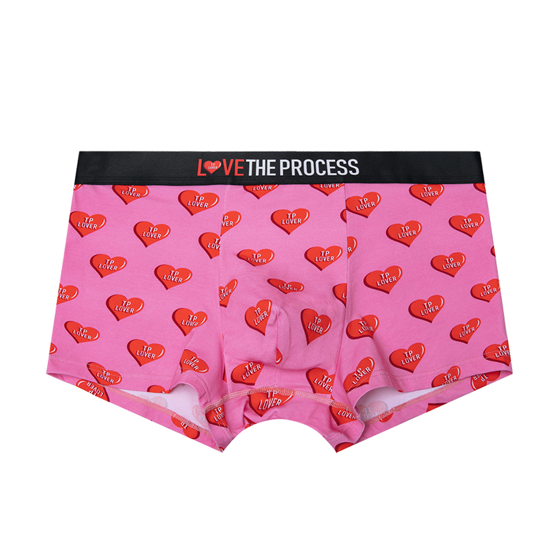 25春夏新款 棉质弹力中腰男底裤 爱心樱花粉色平角裤 潮牌TP情侣内裤