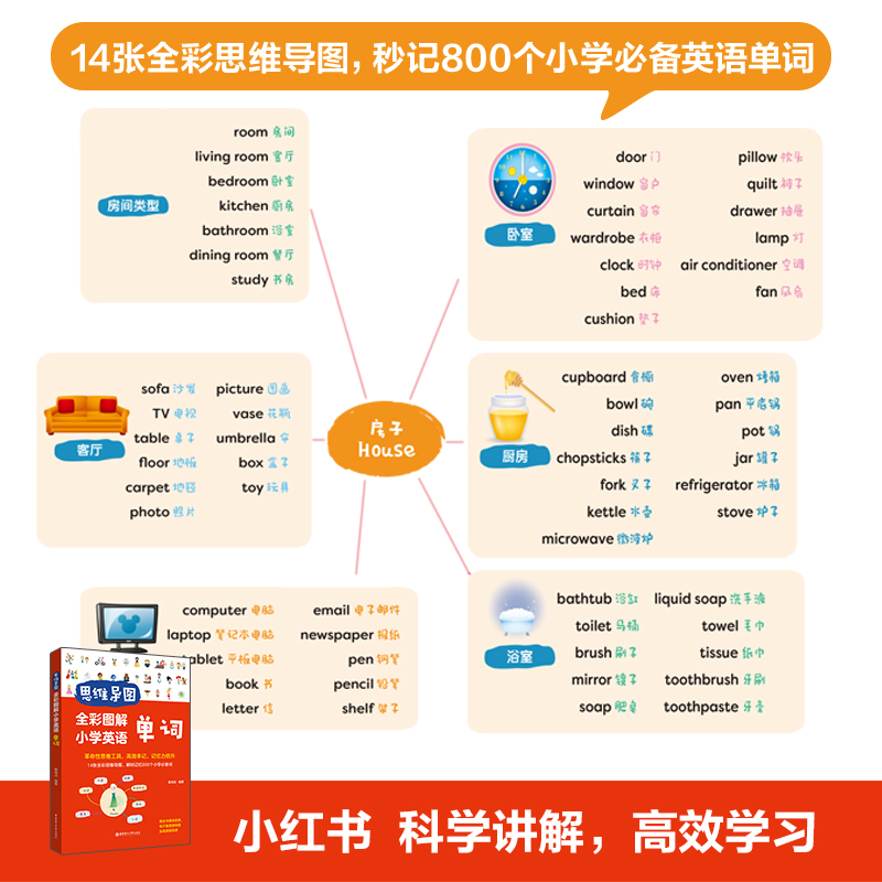 全彩图解小学英语单词思维导图英语语法知识大全 英语单词800词一二三四五六年级100个必备语法规则知识点专项强化训练词汇句型