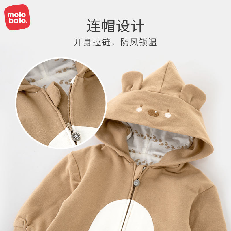 秋款 麦拉贝拉婴儿连体哈衣春季 超萌外出男女宝宝连帽外套爬爬服装