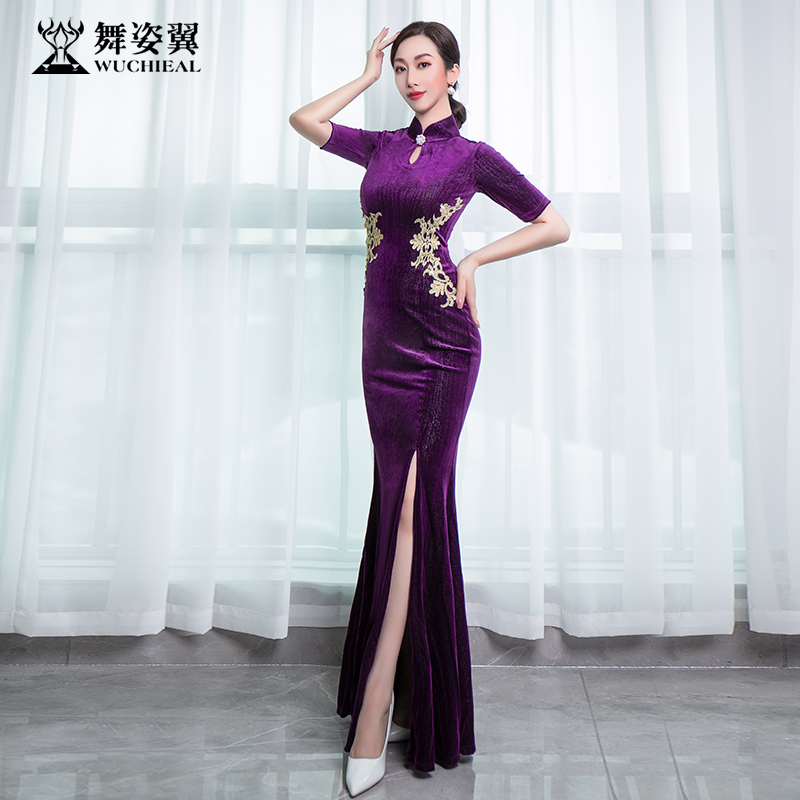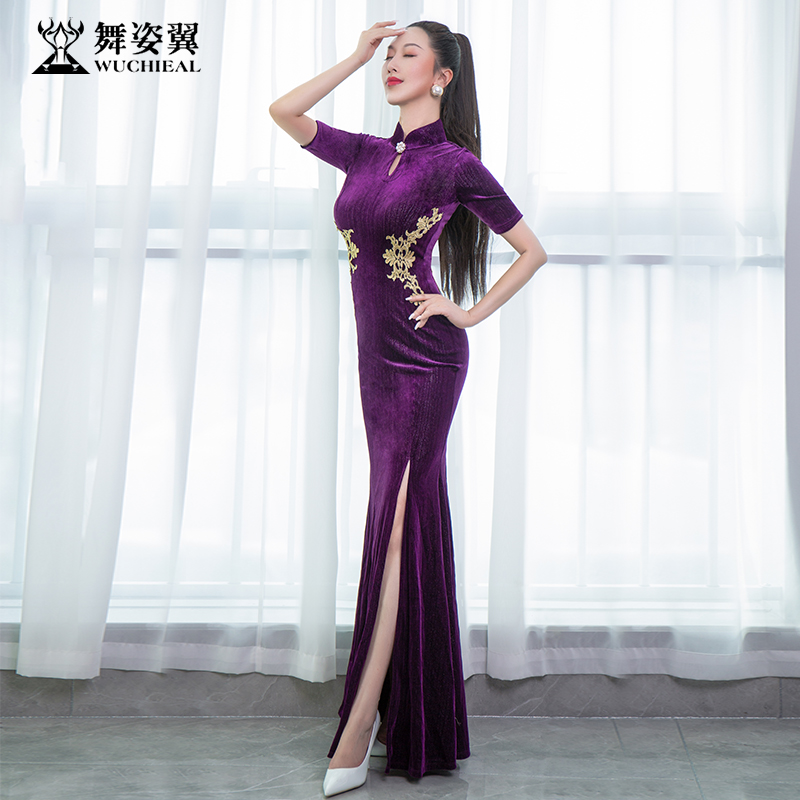 舞姿翼新款 形体旗袍2022古典训练服走秀练功服丝绒旗袍