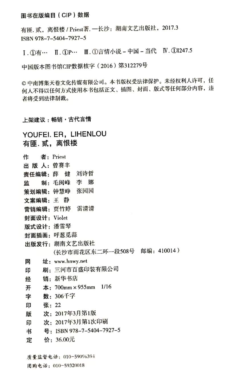 Priest 2离恨楼 湖南文艺出版 社 小说 新华书店正版 中国文学 有匪