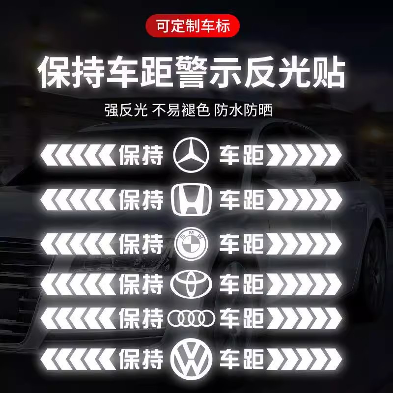 反光贴汽车贴纸保持车距警示创意个性 饰车贴 车尾保险杠划痕遮挡装