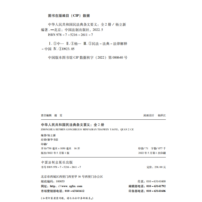 杨立新 全2册 民法典条文释义司法解释 正版 中国法制出版 中华人民共和国民法典条文要义 全面全新修订 社9787521626117 2022新书