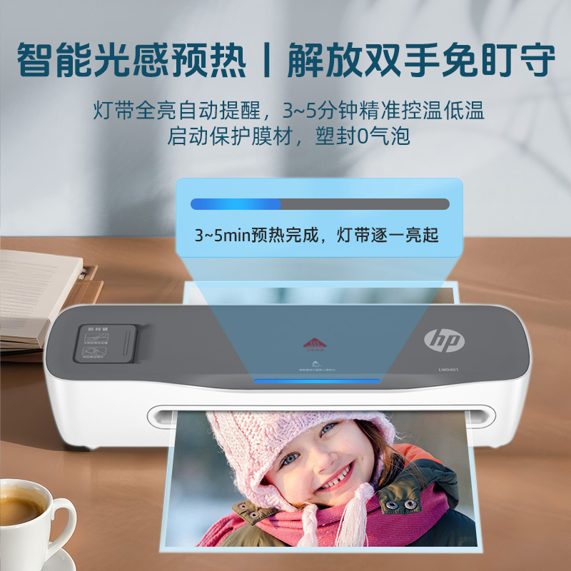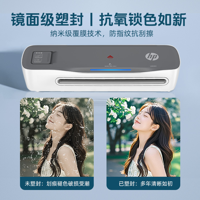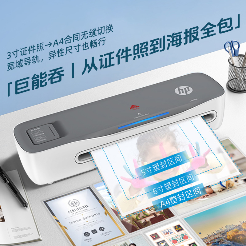 惠普塑封机家用小型照片迷你封膜机照片塑封过塑A4过胶机办公茶叶礼盒烫膜机全自动照片塑封膜热自封机