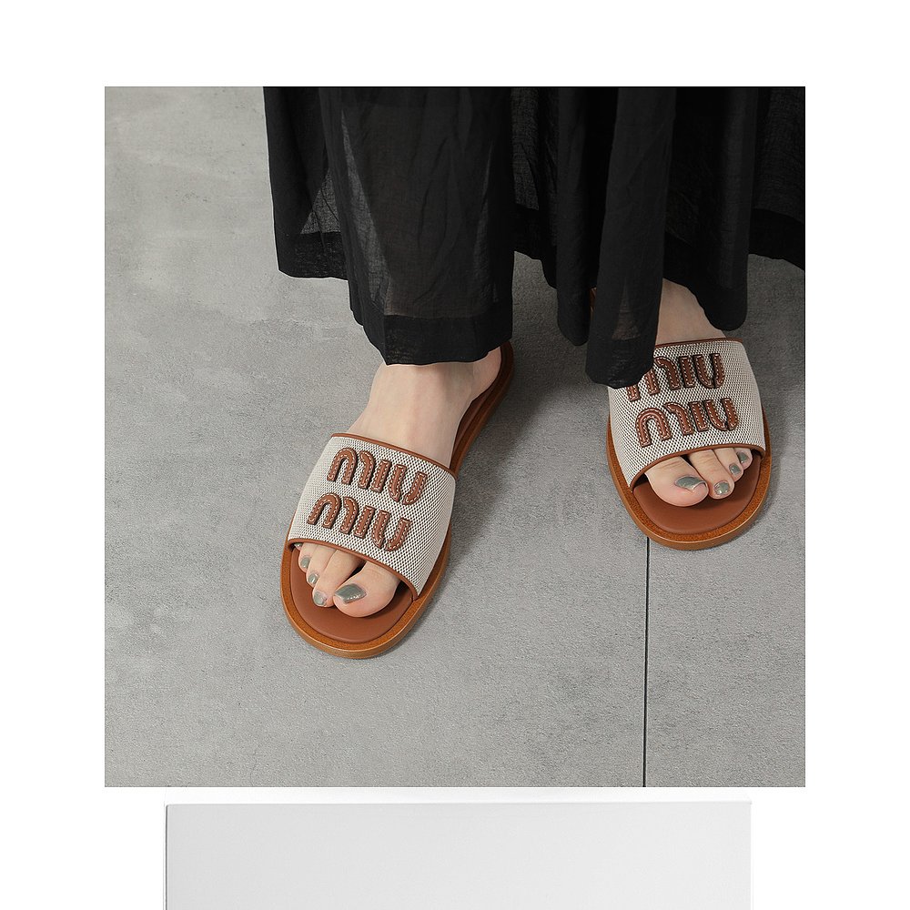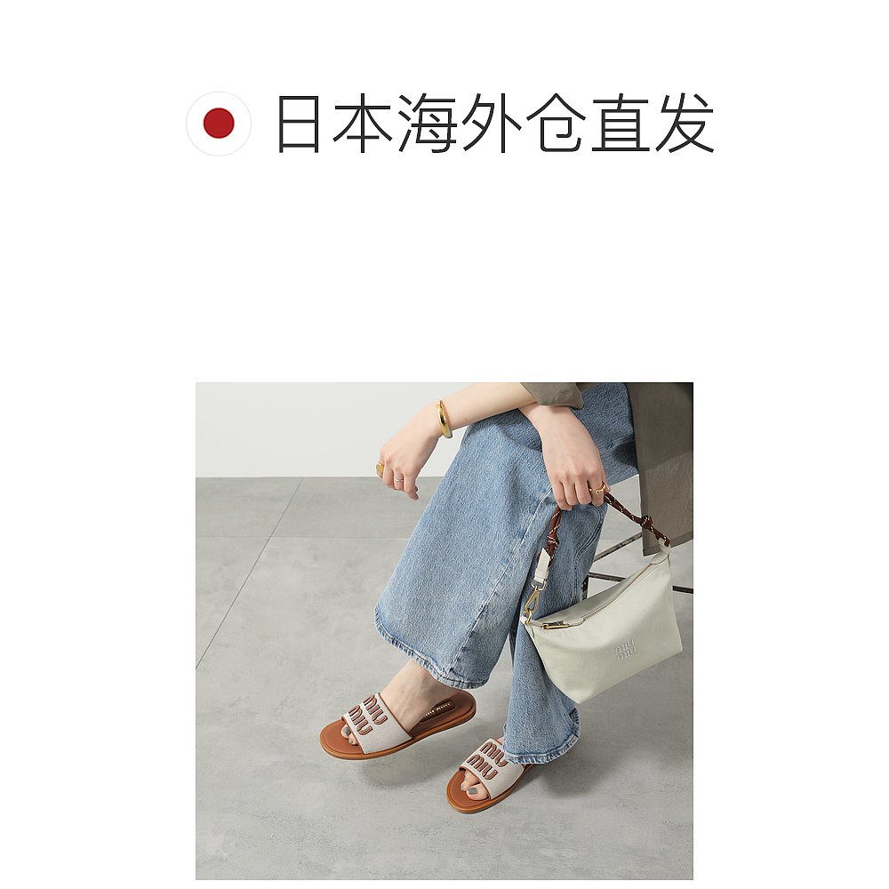 Q1D 5XX644 女士帆布 F06 日本直邮MIUMIU 皮革标志平底鞋 凉鞋
