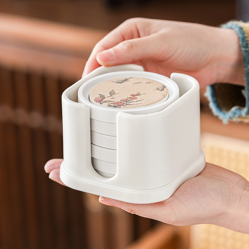 远舍新款 带框茶具配件 吸水白色茶杯垫茶杯托隔热垫五福杯垫六个装