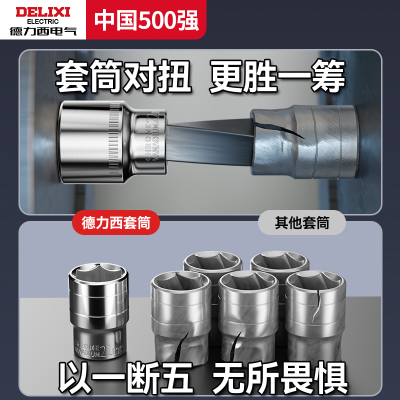 德力西棘轮套筒扳手套装 万能多功能外六角快速扳手套管汽修工具