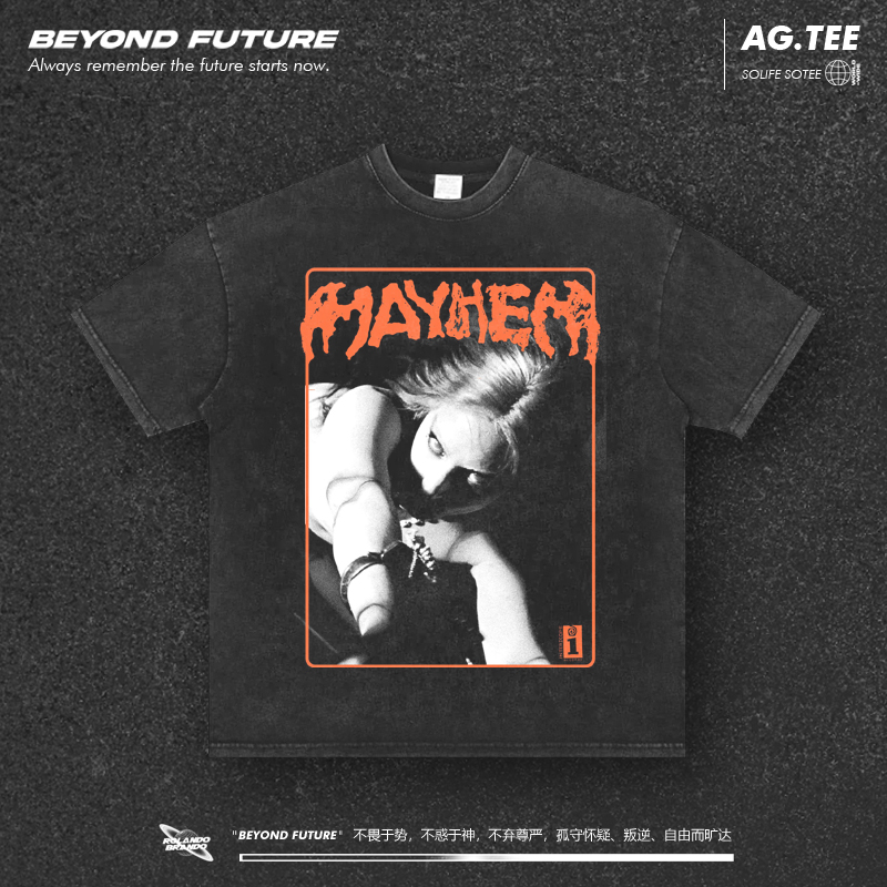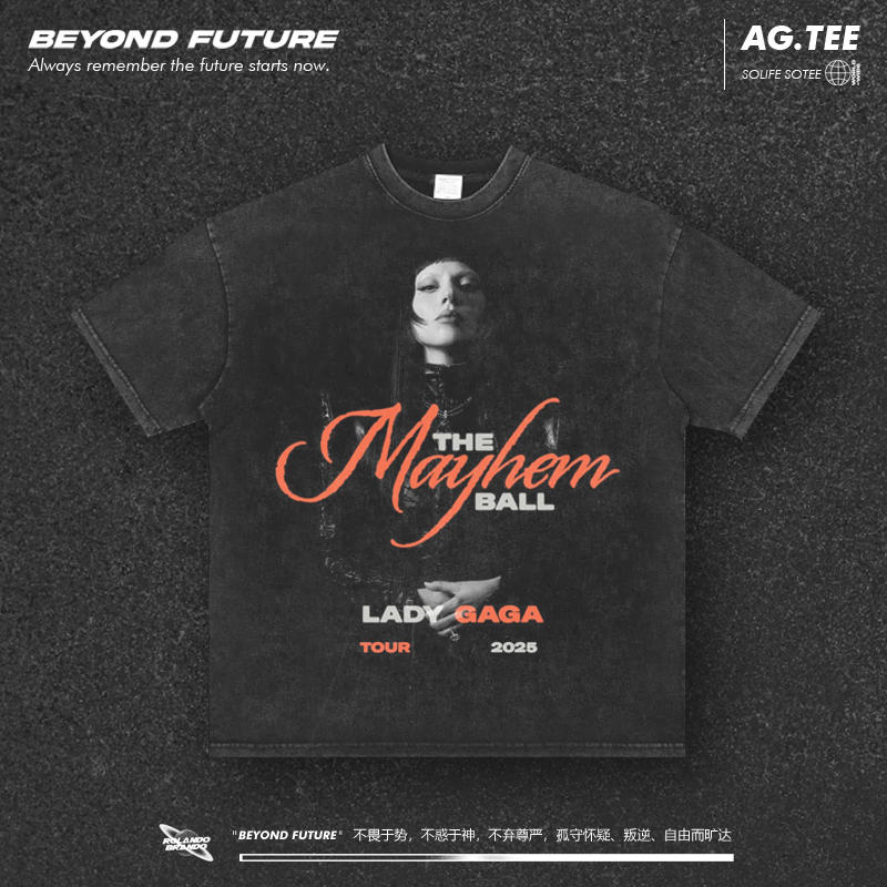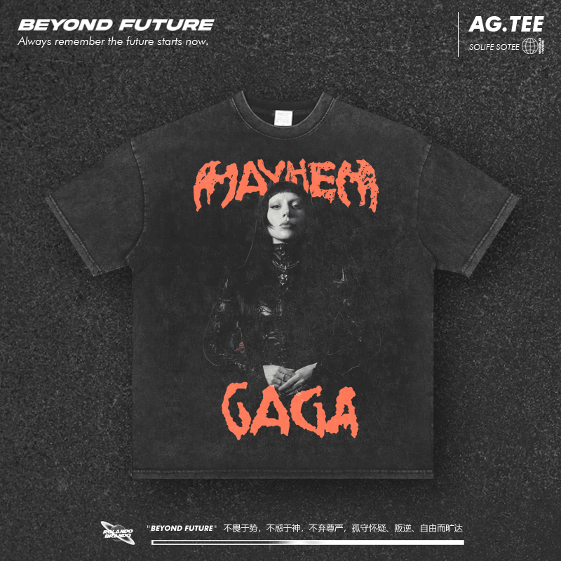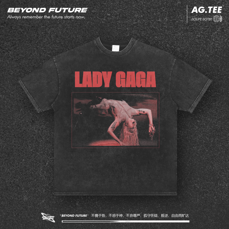 Vintage欧美潮牌LadyGaga美式 T恤 高街宽松中性重磅复古水洗短袖