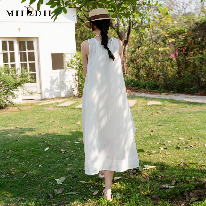 谜底白色连衣裙无袖 2025夏新波嬉度假风圆领大摆A型长裙256ML6251