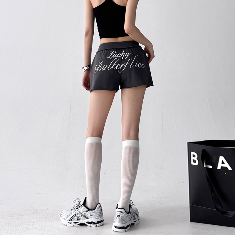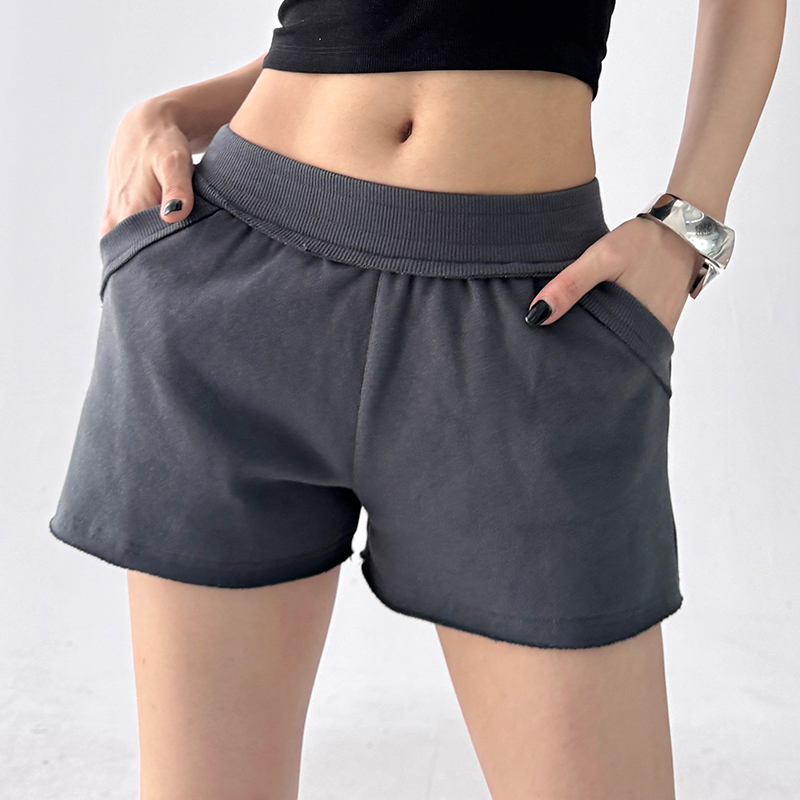 超火新款 女2025夏装 辣妹热裤 夏季 美式 高腰百搭休闲裤 灰色运动短裤