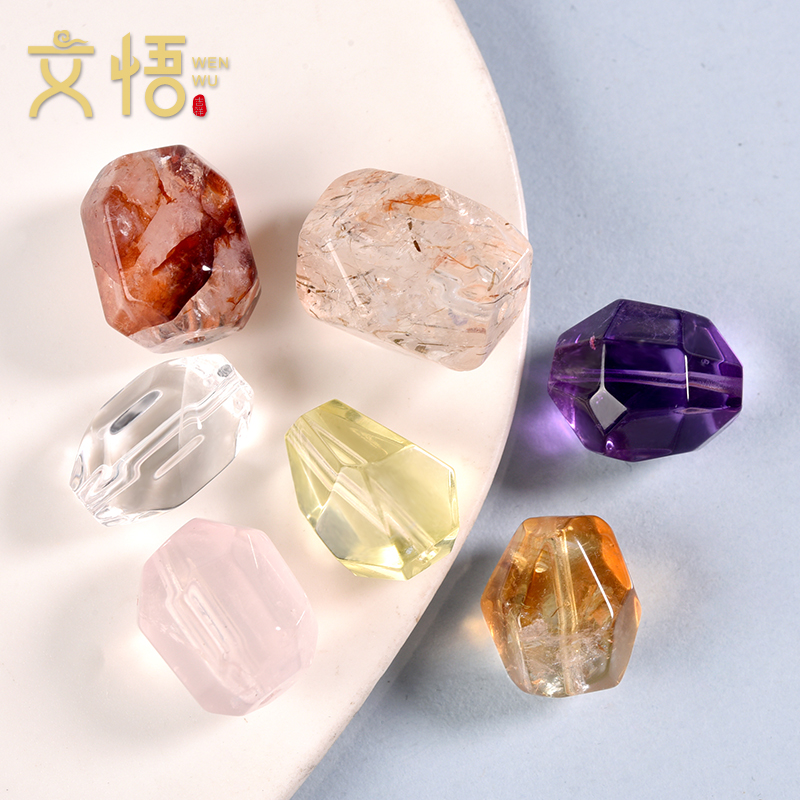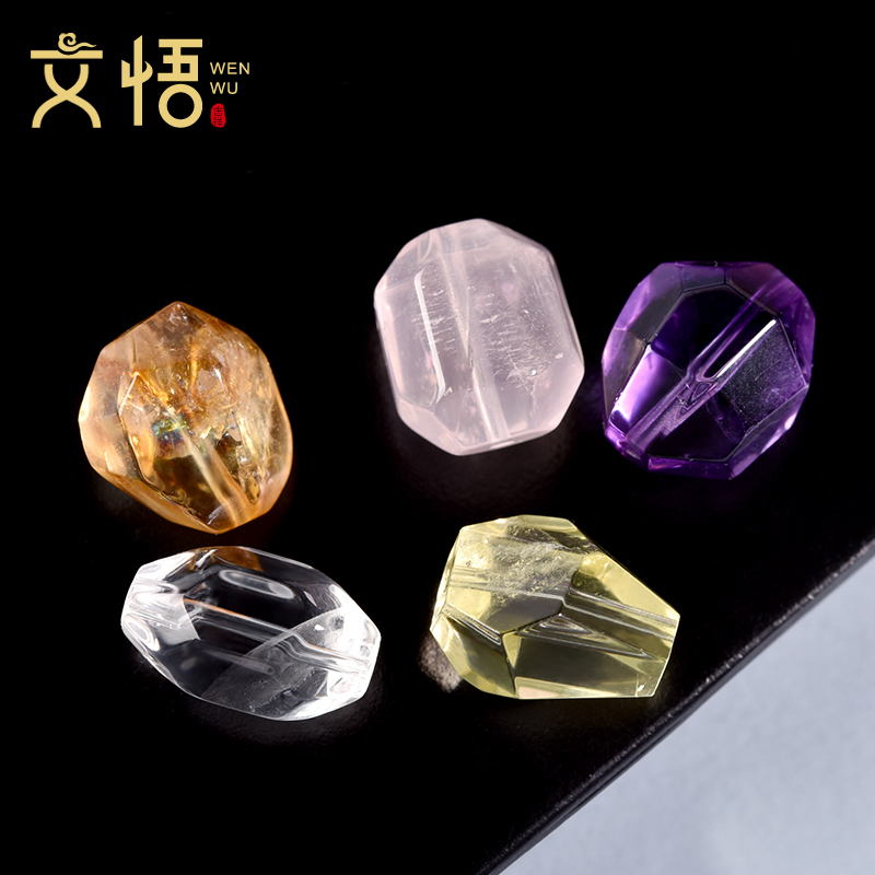 天然黑金超黄塔晶随形散珠子白紫黄水晶粉晶异形手串配珠手链配件