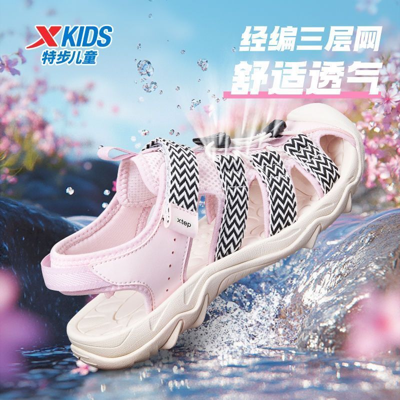 魔术贴包头护趾沙滩凉鞋 女童户外防滑溯溪鞋 2025夏季 特步童鞋