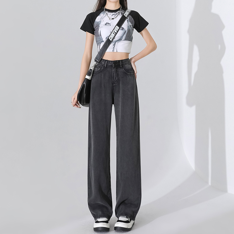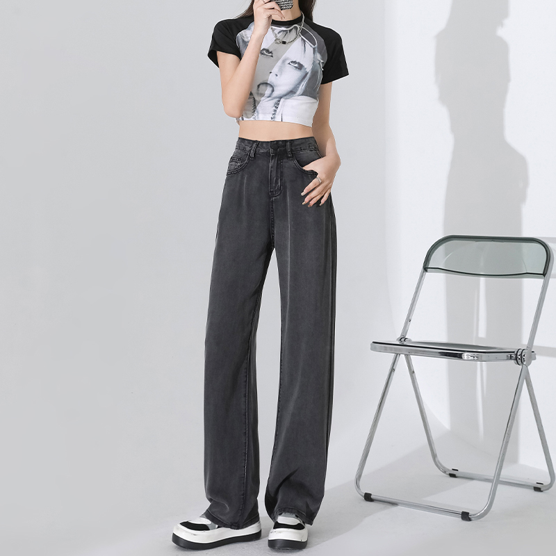 黑灰色显瘦垂感冰丝阔腿裤 2025薄款 子 女夏季 莱赛尔天丝直筒牛仔裤