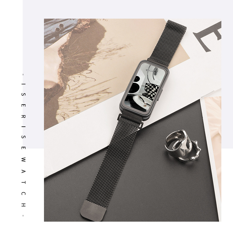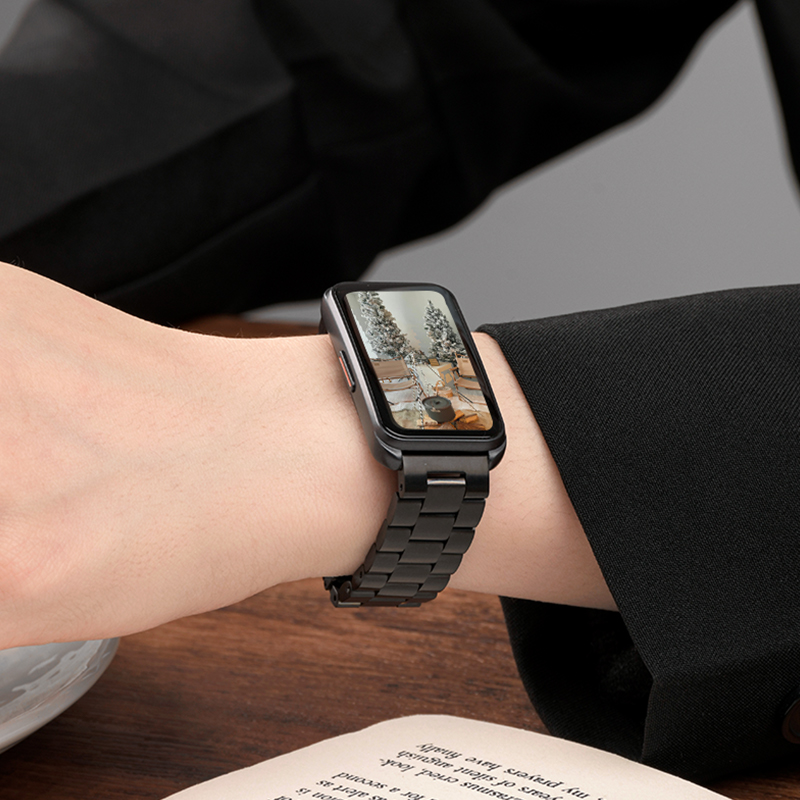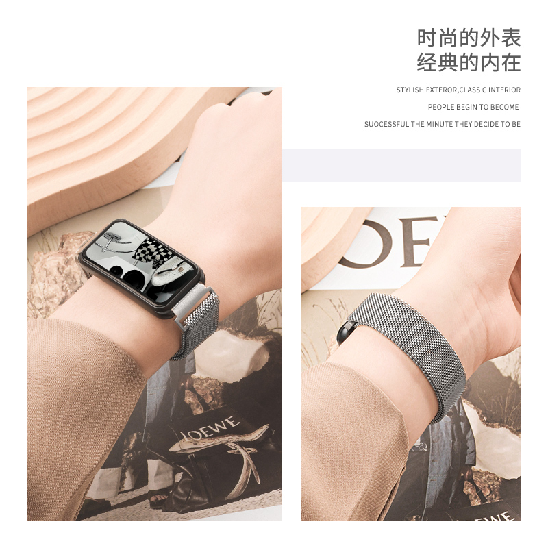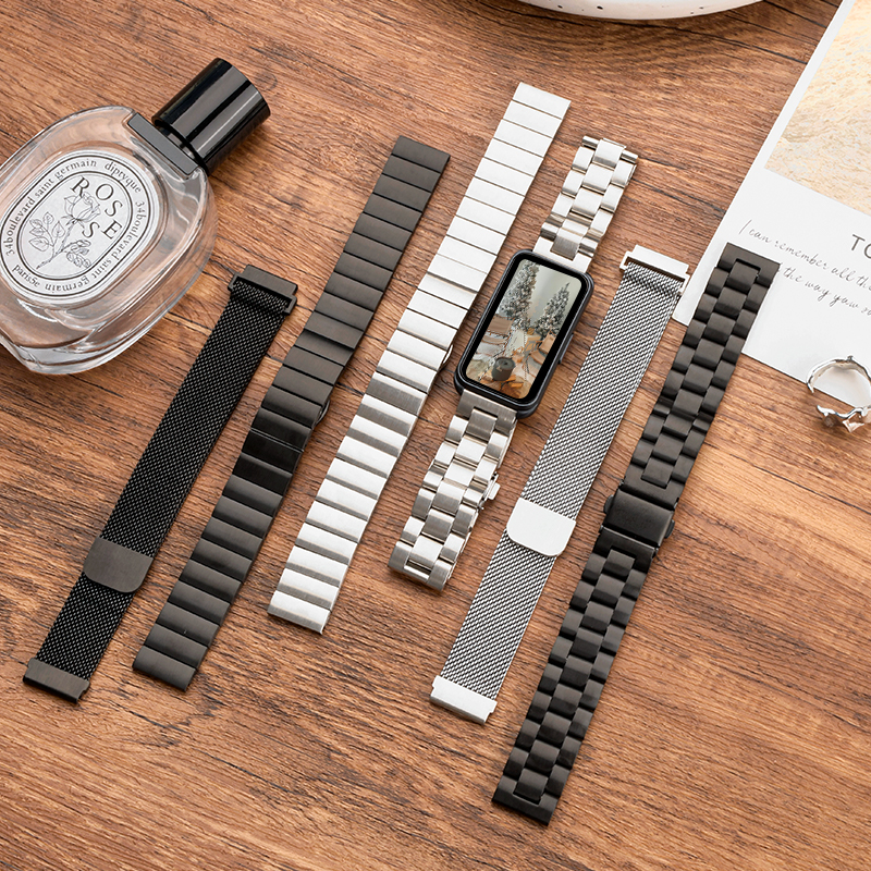 腕带智能运动手环带配件三珠钢带夏天透气舒适高级男女替换带 时尚 适用于Keep手环B5 B4表带米兰磁吸金属新款