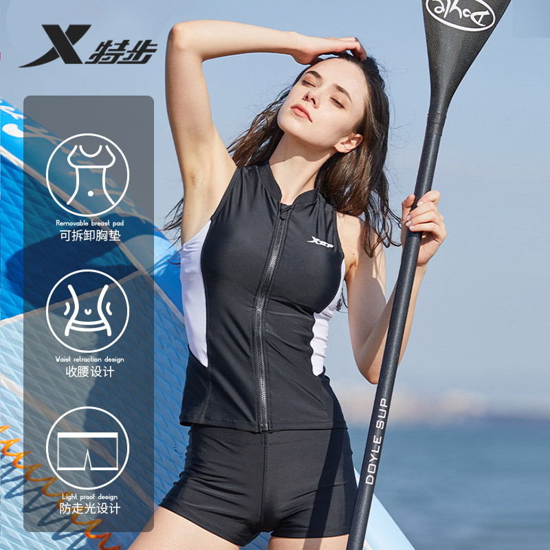 女孩速干海边专业温泉泳装 分体遮肚显瘦大码 2025新款 特步泳衣女款
