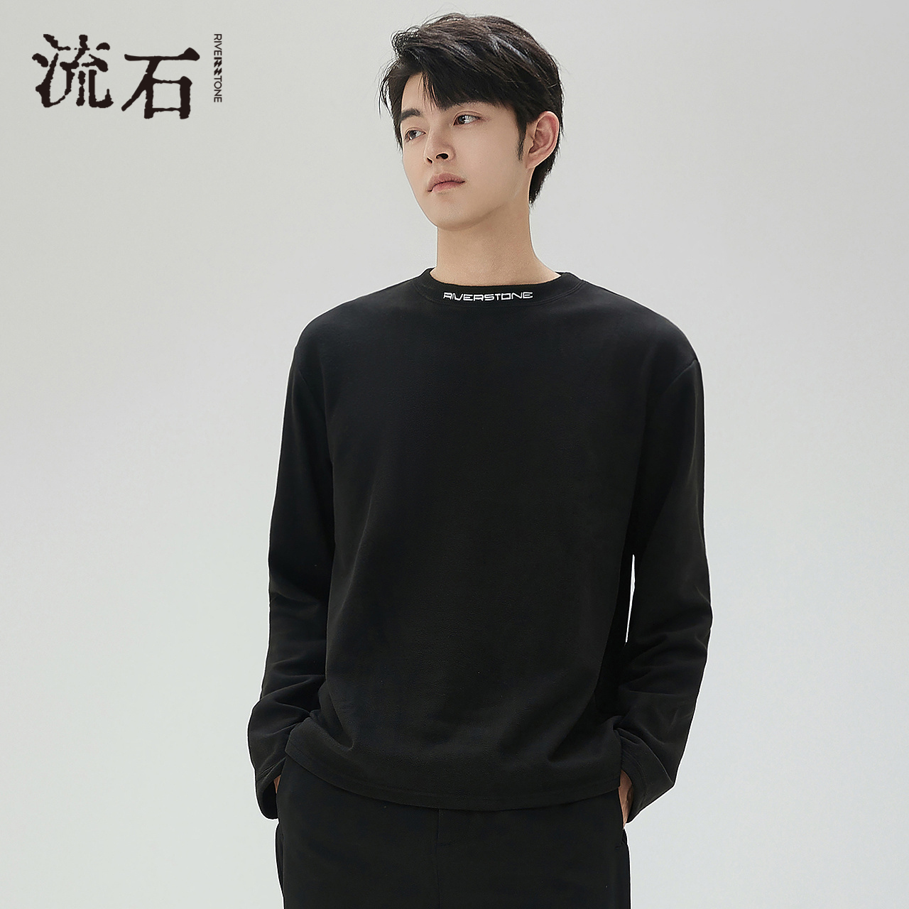 健身半拉链长袖 加绒 新款 T恤秋季 上衣黑色 FILA斐乐官方男运动长袖
