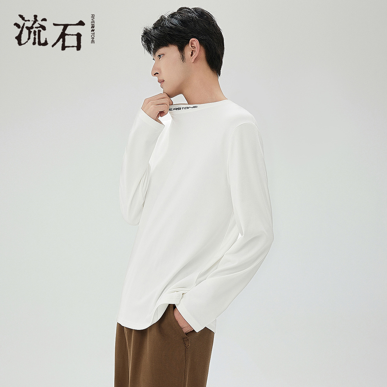 男款 回力白色长袖 纯棉打底衫 春秋上衣男士 t恤男内搭衣服2025新款