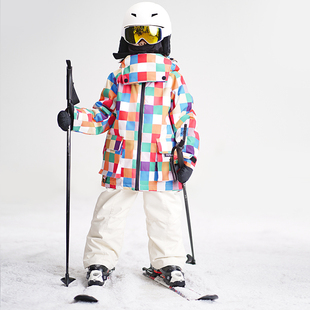 强防水高透湿三合一运动套装 IMGO专业儿童滑雪服 色彩方块