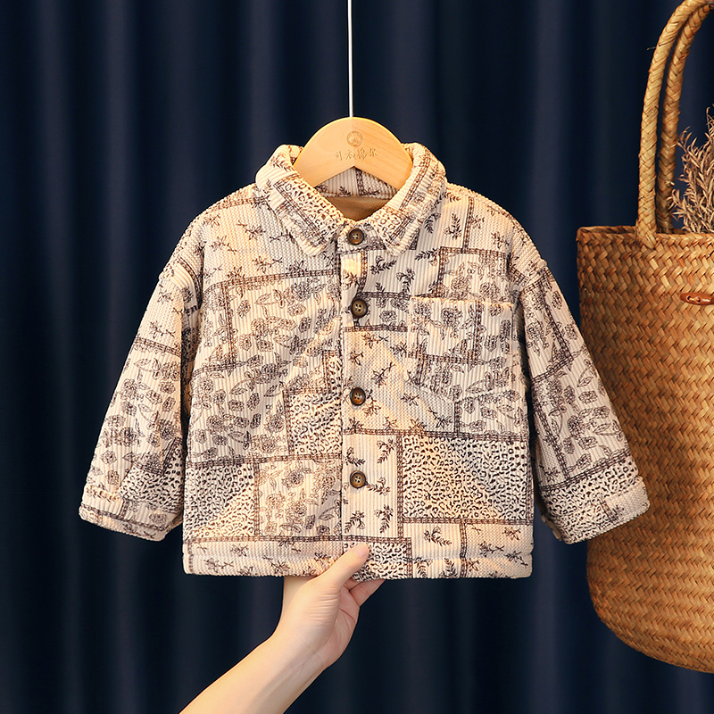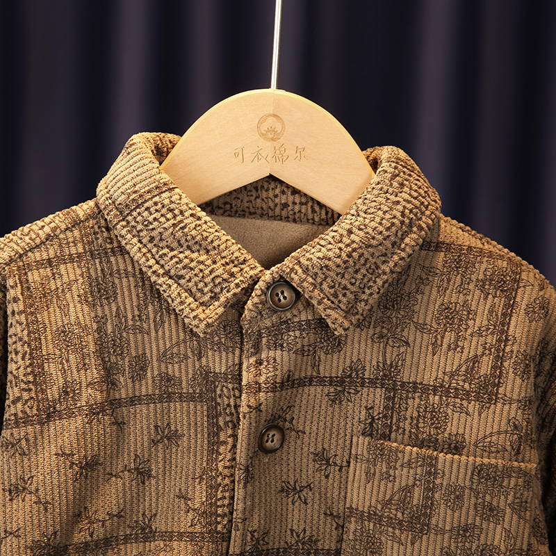 帅气时髦上衣儿童灯芯绒衬衣 保暖女宝宝韩版 男童衬衫 加绒加棉冬季