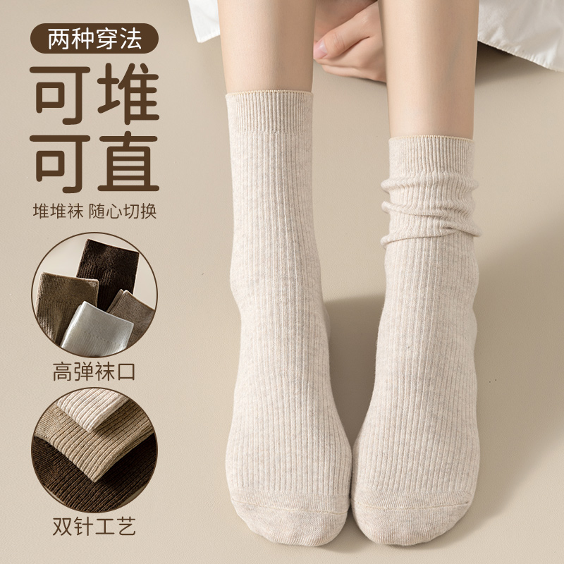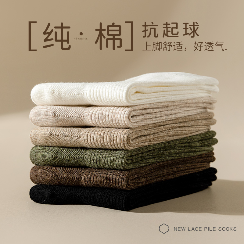 棉袜吸汗春秋款 防臭厚款 月子无骨长筒袜 纯棉中筒袜秋冬季 袜子女款