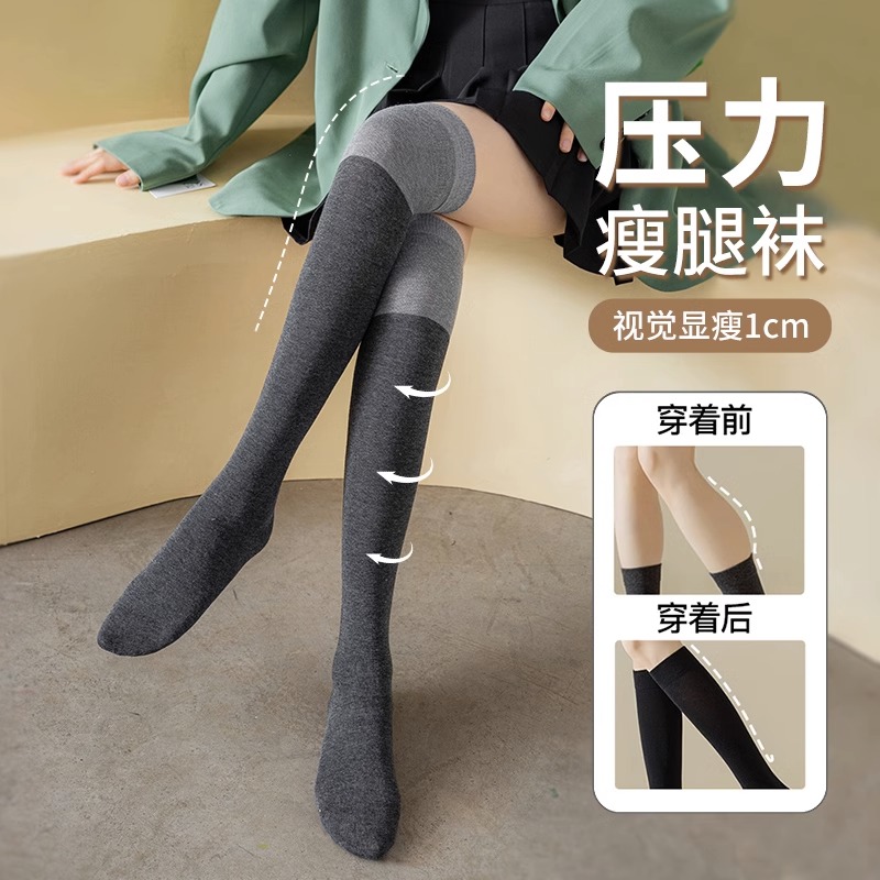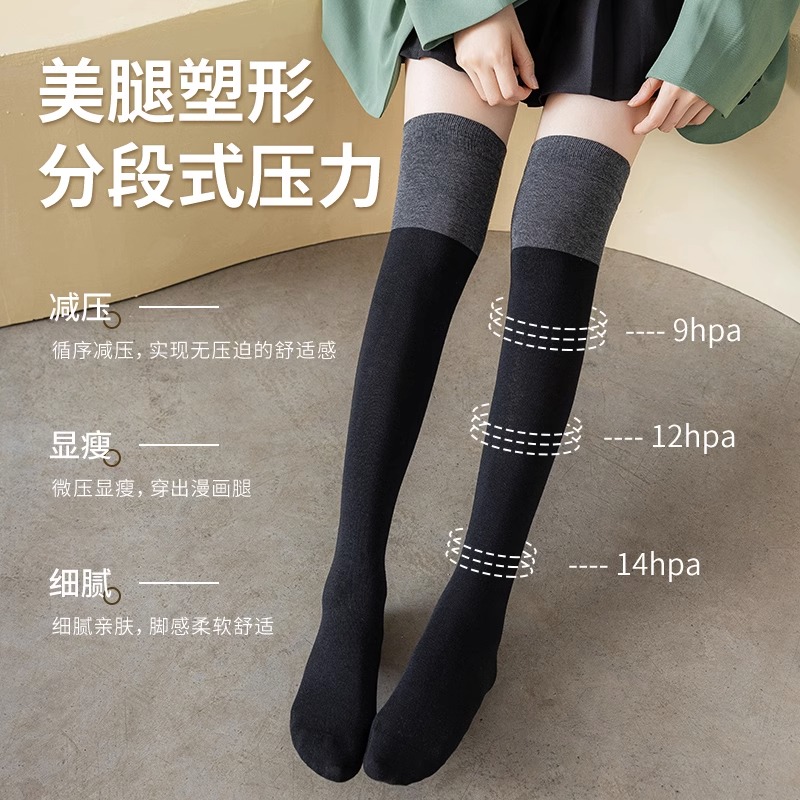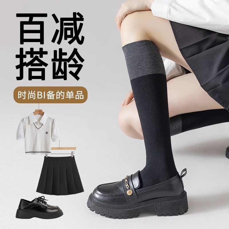 袜子女长筒过膝秋冬季 及膝袜 高腿袜黑灰拼接小腿袜jk搭配乐福鞋