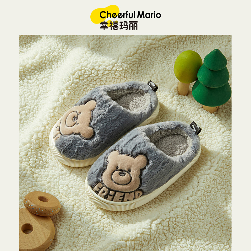 室内男孩毛毛秋冬家居防滑亲子中大童宝宝拖鞋 儿童棉拖鞋 男童冬季