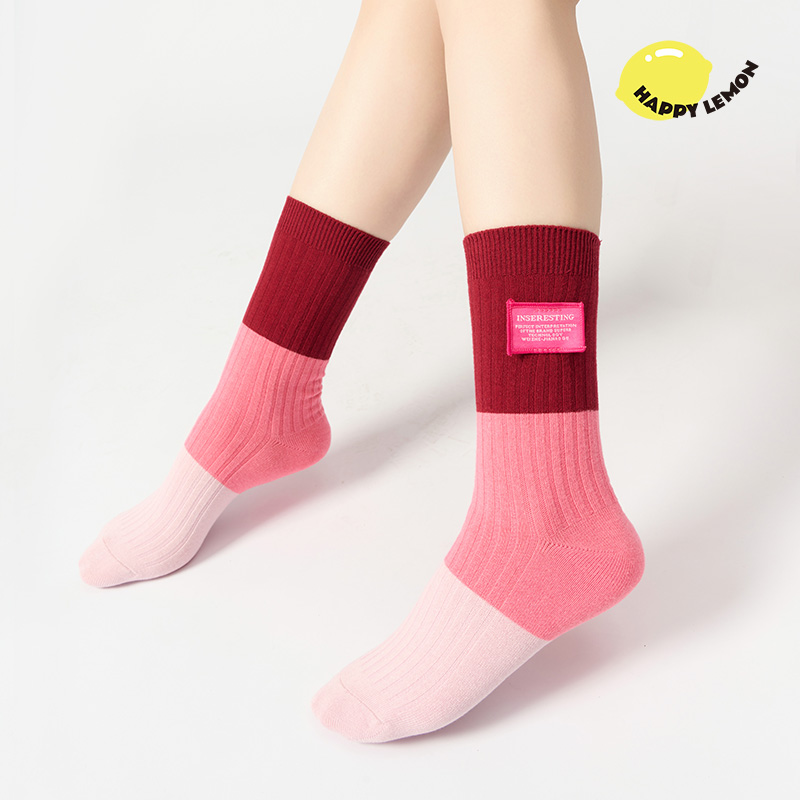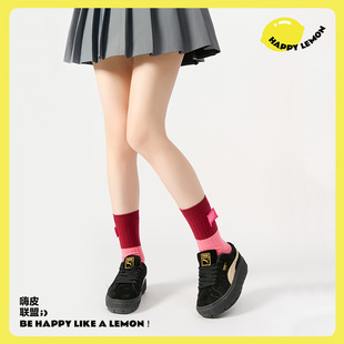 HAPPYLEMON袜子女中筒袜春秋ins潮外穿可爱字母条纹秋冬款 长棉袜
