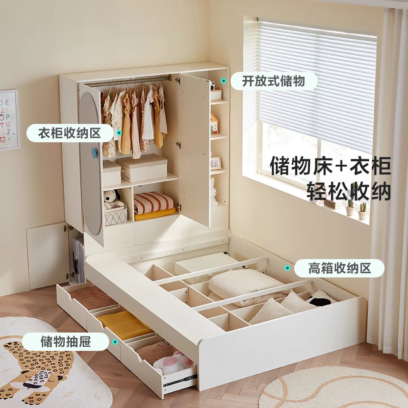半高床带衣柜书桌一体小户型实木多功能可定制大人儿童抽拉储物床