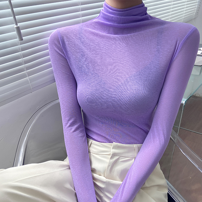 黑色长袖 内搭上衣女秋冬2025新款 微透薄款 修身 t恤 网纱高领打底衫