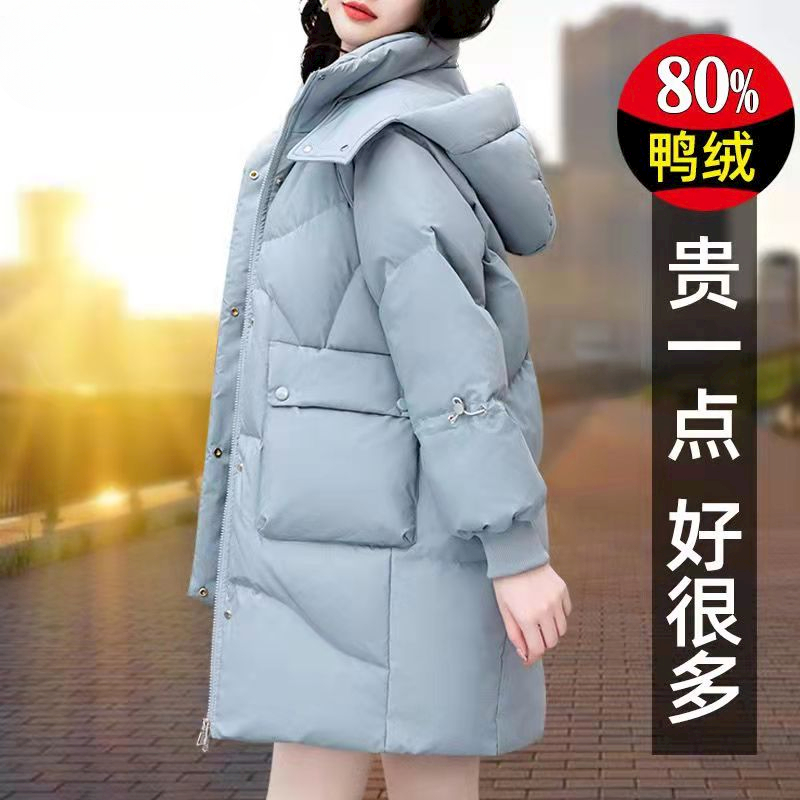 时尚 可拆帽韩版 百搭加厚保暖外套W 2025年冬季 鸭鸭羽绒服女中长款