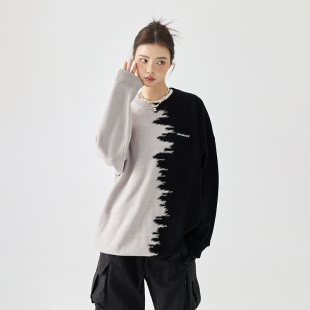 拼格情侣外套 简约连帽毛衣宽松慵懒风针织衫 Achock官方店