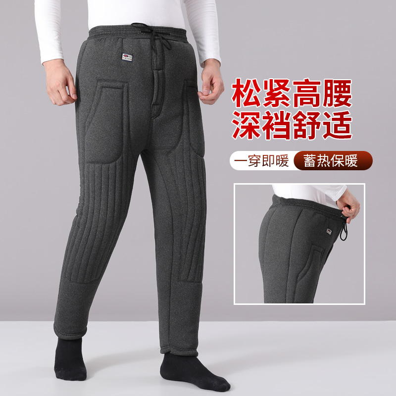 加绒加厚中老年爷爷内穿打底 男护腰爸爸羊羔绒保暖裤 冬季 老人棉裤
