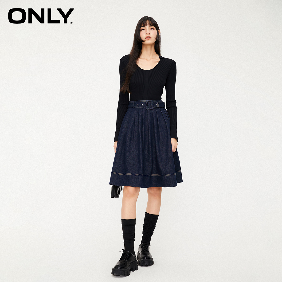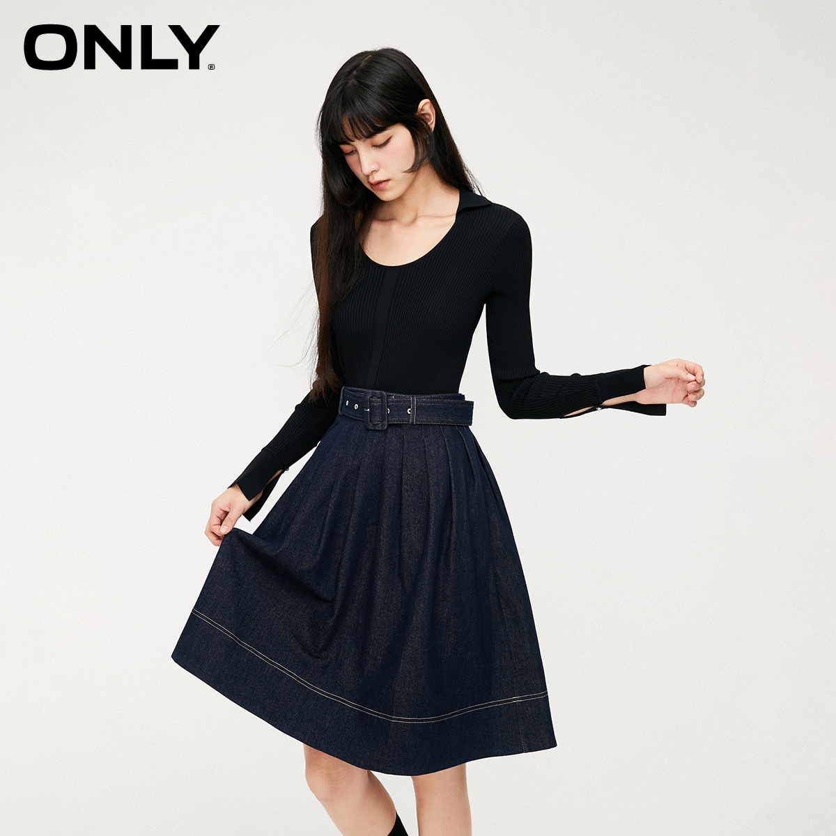 含棉捏褶老钱风中长裙32537D011 新款 Vero Moda连衣裙女2025秋季