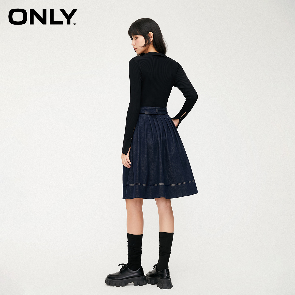 裙子气质百褶裙短裙 灰色连衣裙女蝴蝶结西装 DPLAY2025年秋季 新款