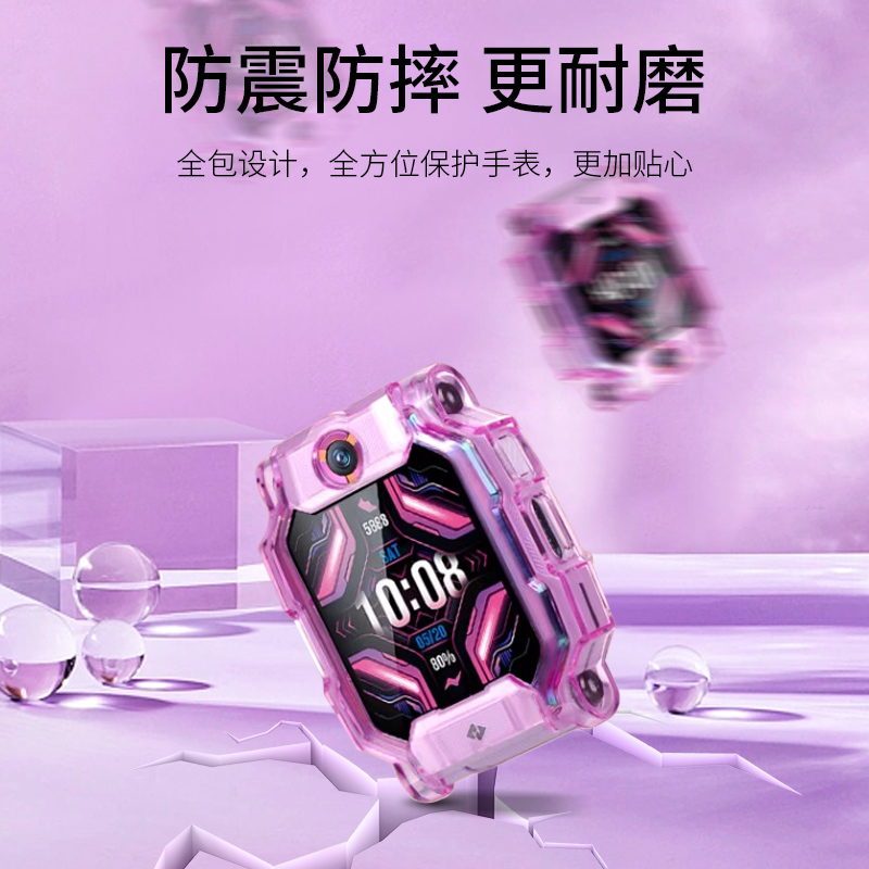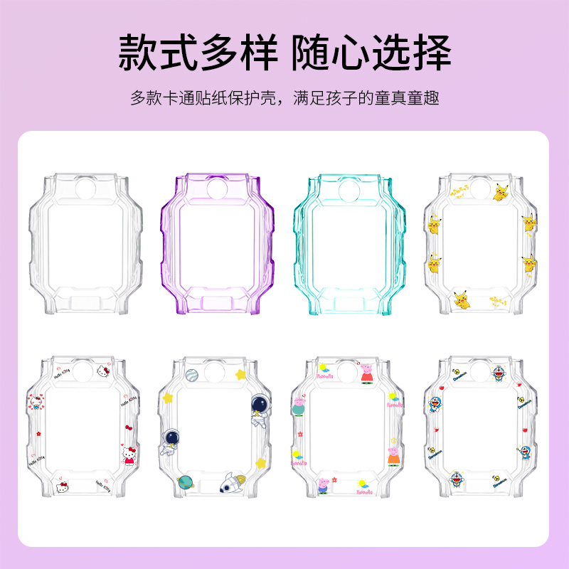适用小天才Z9保护套儿童电话手表Z9少年版 印花保护壳大黄蜂透明钢化膜高清膜防摔防爆少年灰全包外壳表套配件