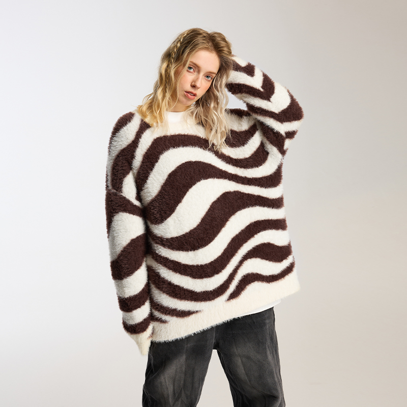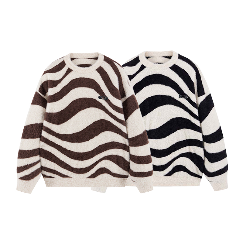 长袖 ics iconslab仿貂毛扭曲条纹纱线拼接套头毛衣男冬情侣美式