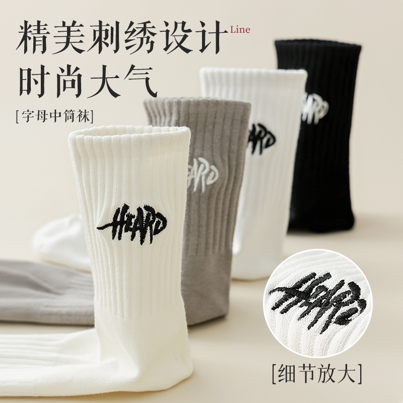 潮袜 吸汗运动袜黑色刺绣长筒篮球美式 袜子男士 中筒长袜棉袜秋冬季