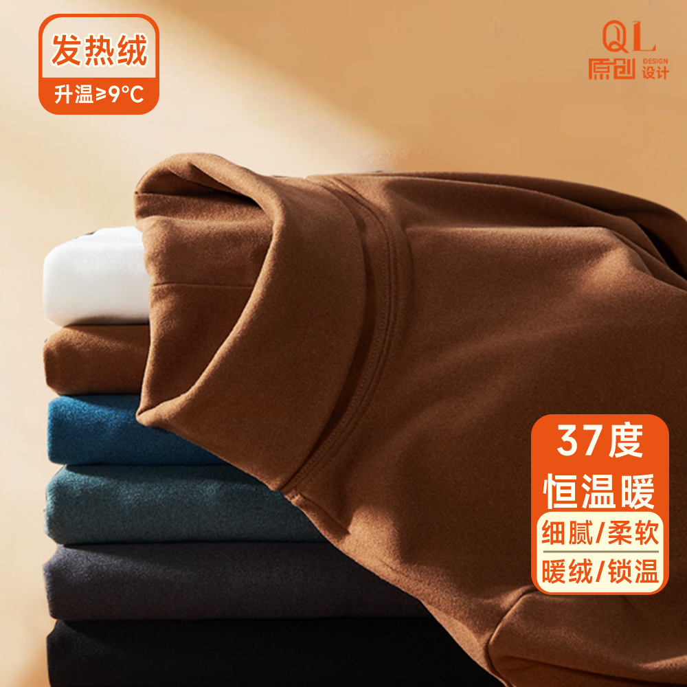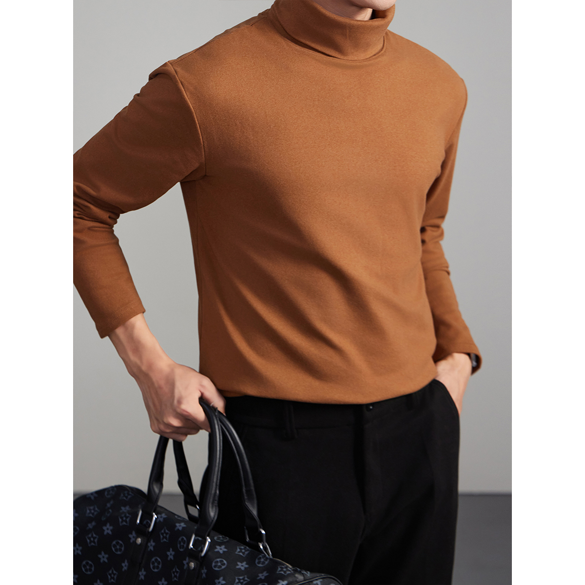 加绒保暖内搭双面绒磨毛上衣新款 T恤冬季 男高领长袖 德绒打底衫