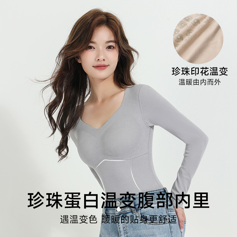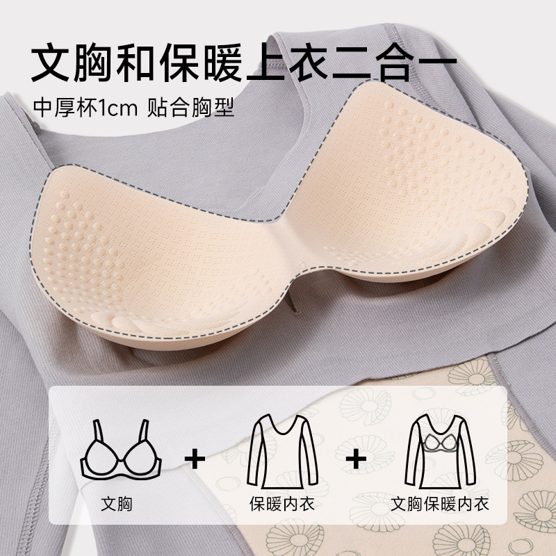 打底衫 女德绒保暖内衣加厚加羊绒秋冬带胸垫塑型修身 套装 秋衣秋裤
