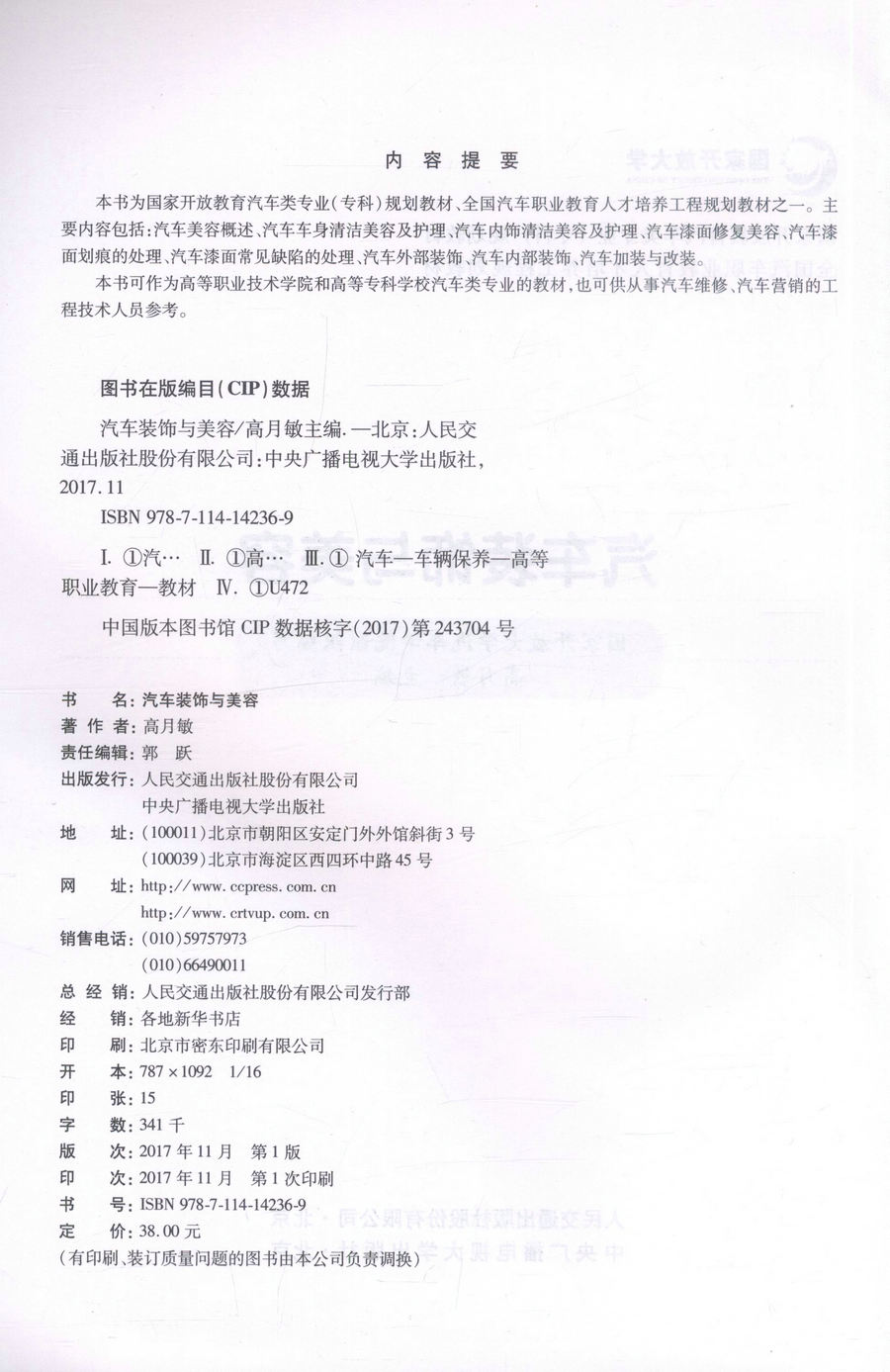 专科 国家开放教育汽车类专业 规划教材 高月敏 社9787114142369 汽车装 人民交通出版 饰与美容