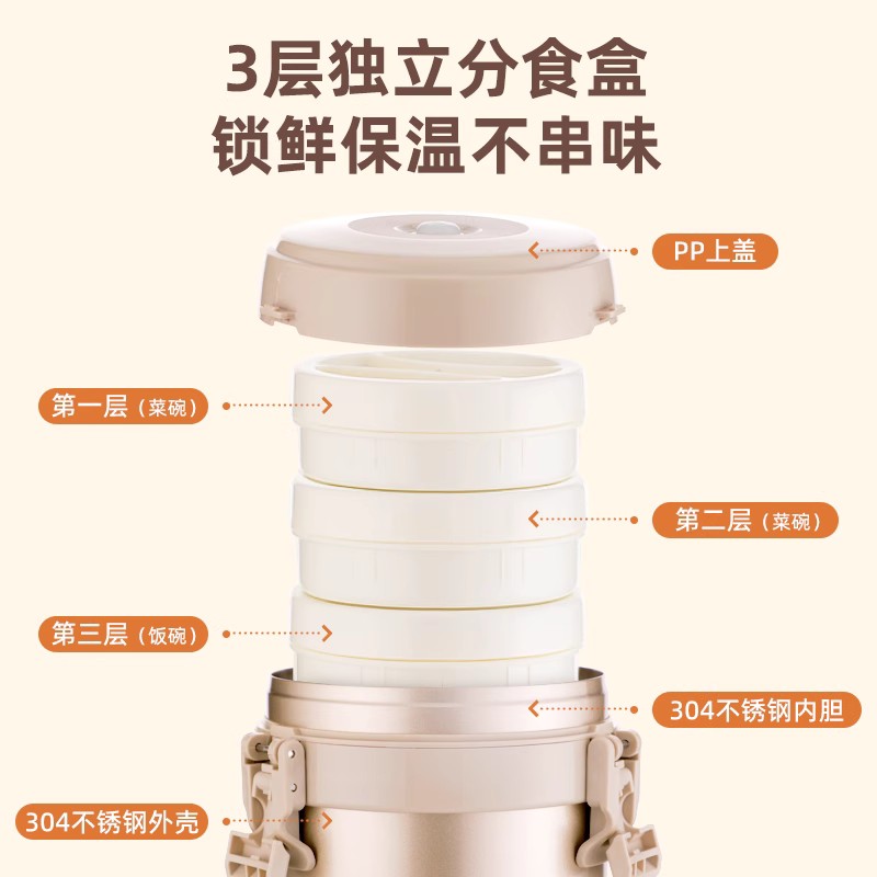 富光保温饭盒学生上班族便携便当盒大容量多层不锈钢超长保温饭桶