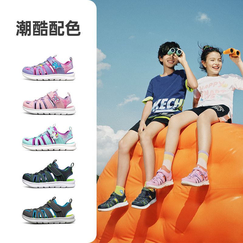 青少年软底防滑休闲运动凉鞋 男女童沙滩鞋 童鞋 Skechers斯凯奇夏季
