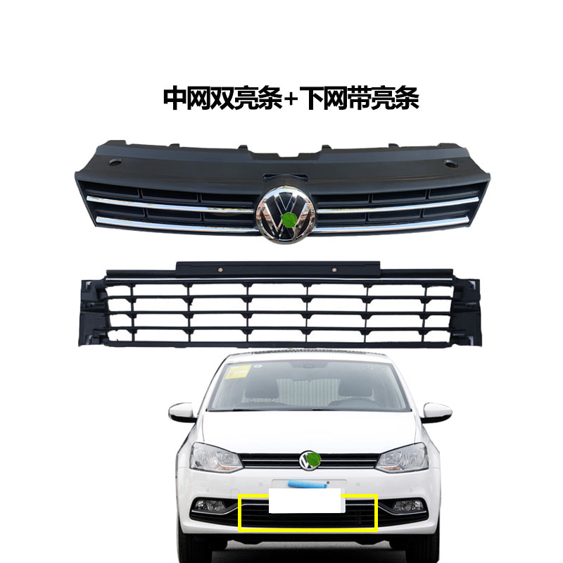 18款 适用于14 新POLO中网前杠网格栅框下中网通风网罩框
