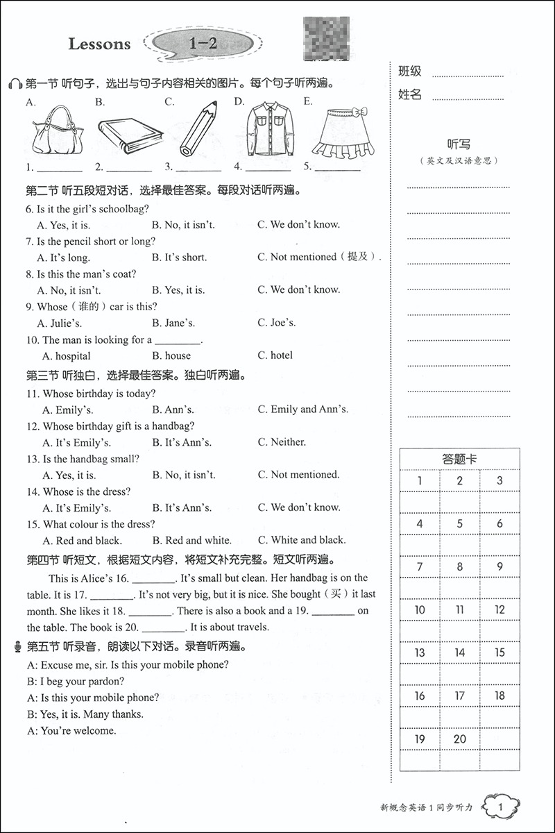 新概念英语1同步听力训练1 新概念英语成人版 第一册 内容配套外研社新概念英语教材同步听力专项练习 1练习书 附手机音频 子金传媒