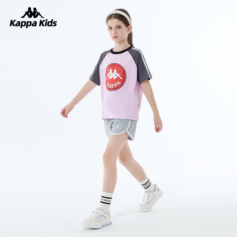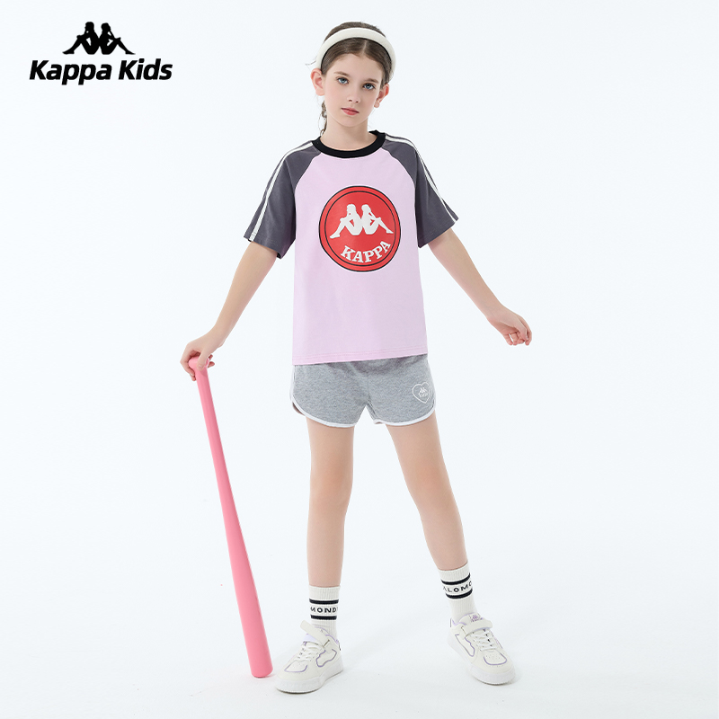 女童t恤夏装 Kappa卡帕童装 休闲上衣2023新款 女宝宝插肩袖 儿童短袖