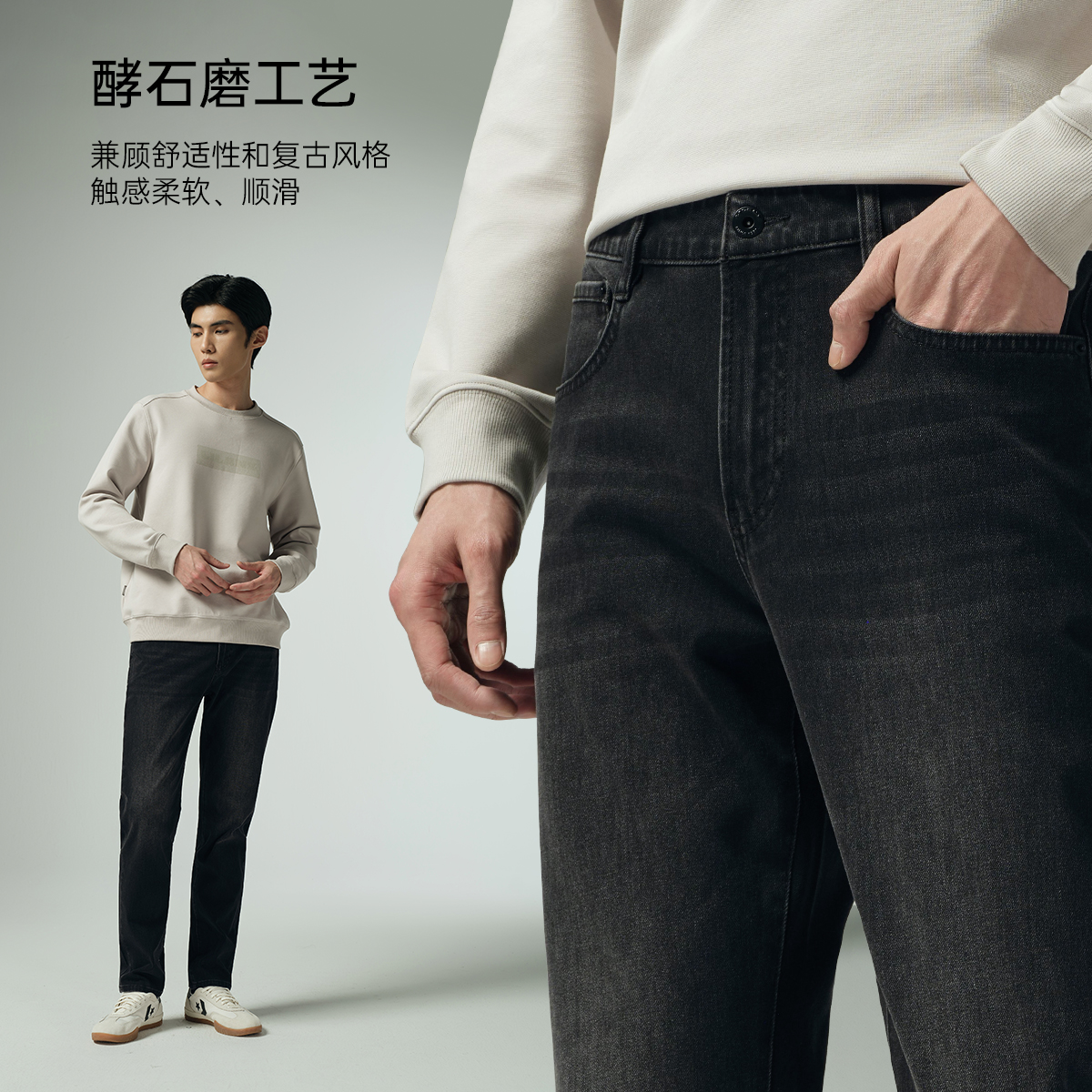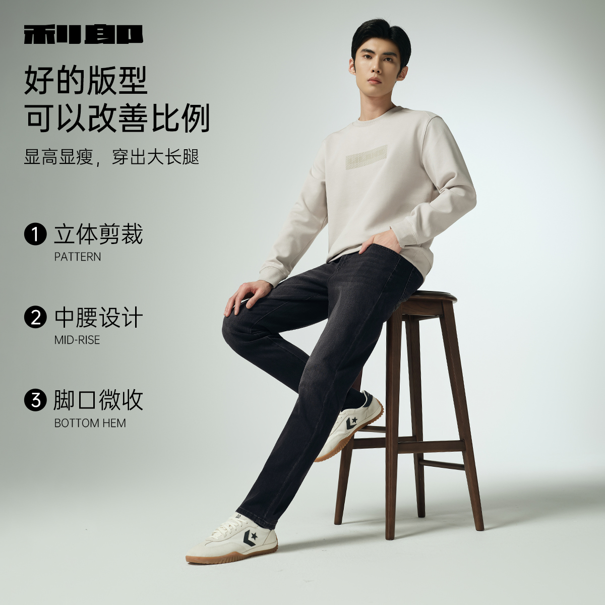 男士 利郎官方牛仔裤 2025春秋季 新款 商务男裤 黑色修身 四面弹力