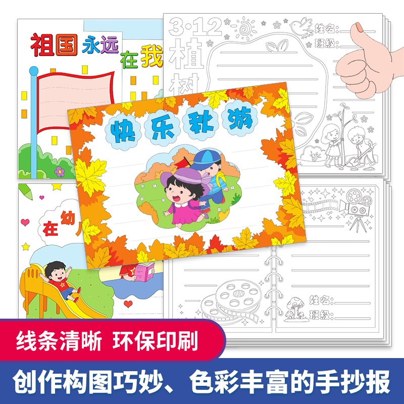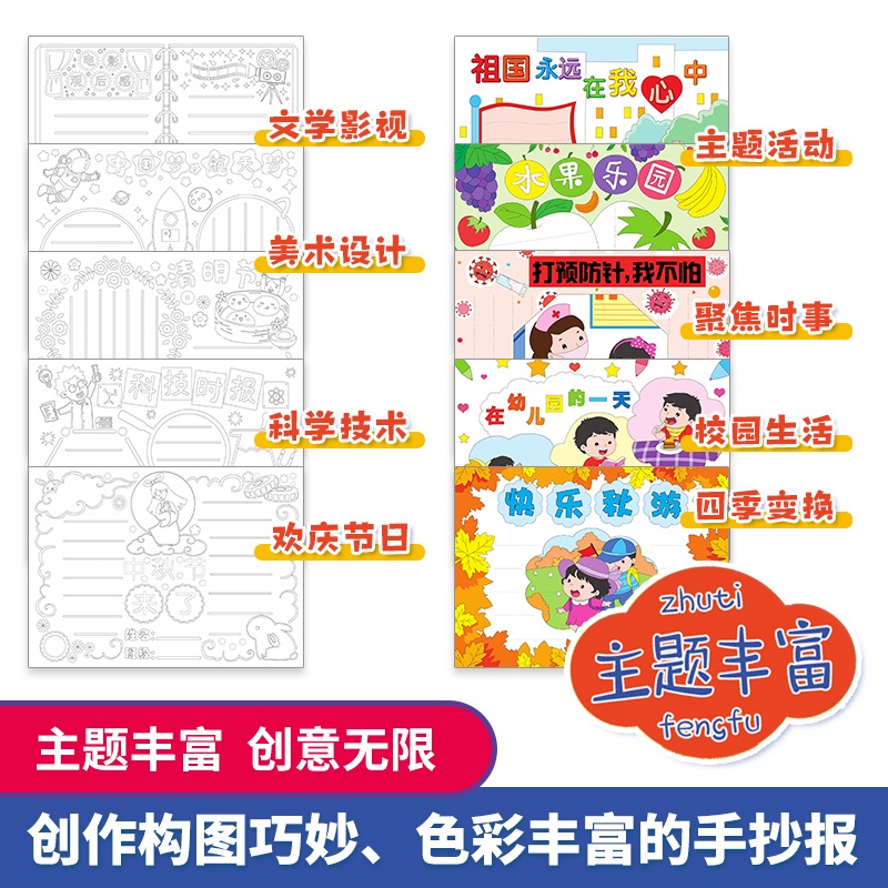 小学生手抄报纸工具模版 黑板报通用儿童绘画涂色书校园节日手抄报入门基础提高拓展素材神器 大全万能黑板报半成品素材万能神奇新款