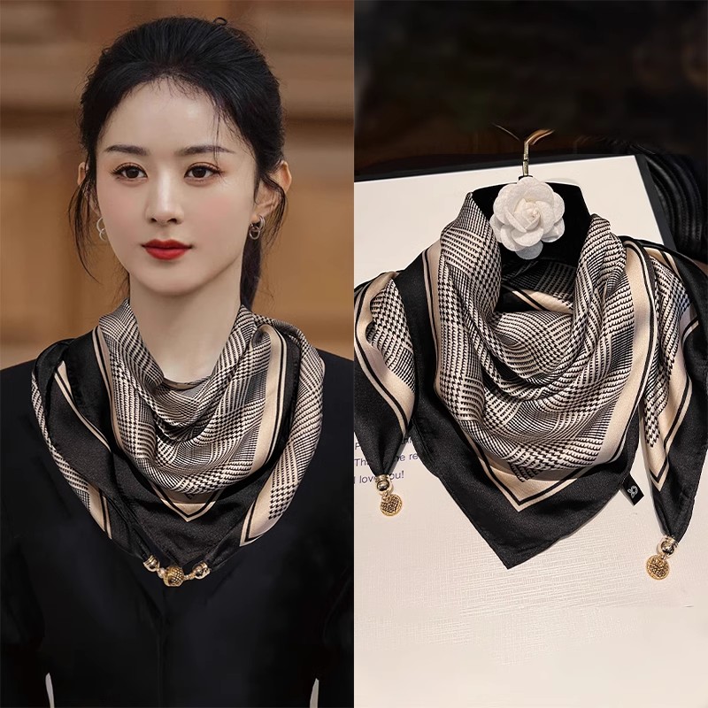 韩版 饰护颈薄围巾领巾 条纹小方巾丝巾女方巾春秋磁吸扣三角巾衬衫
