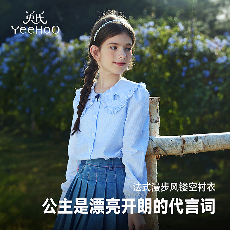 儿童学院风娃娃领衬衣中大童装 2025新款 春秋上衣 衬衫 英氏女童长袖